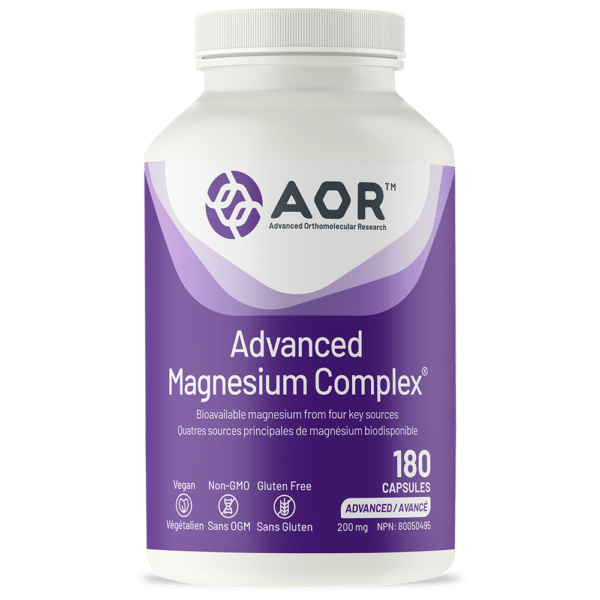 AOR’s Advanced Magnesium Complex® provides a comprehensive magnesium formula which contains four of the most absorbable, effective and well-tolerated forms of magnesium, ensuring adequate absorption and usage by the body, and allowing for variations in individual body chemistry and requirements. It also provides useful salt or chelate forms whose benefits extend beyond those of magnesium alone, without the digestive problems caused by magnesium oxide.