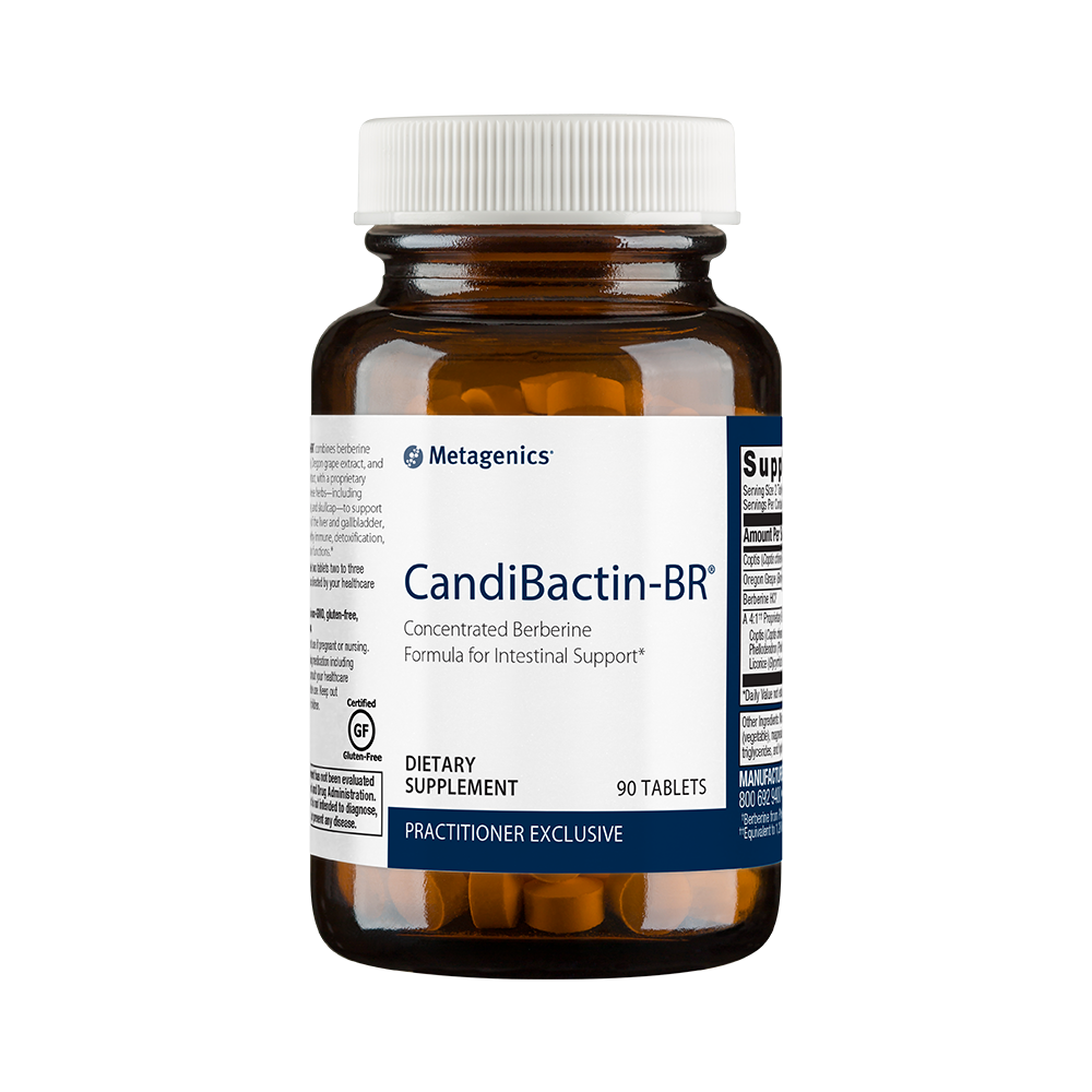 CandiBactin-BR™ combines berberine hydrochloride, Oregon grape extract, and coptis root extract, with a proprietary extract of Chinese herbs—including ginger, licorice, and skullcap—to support detoxification of the liver and gallbladder, as well as healthy immune, detoxification, and elimination functions.*