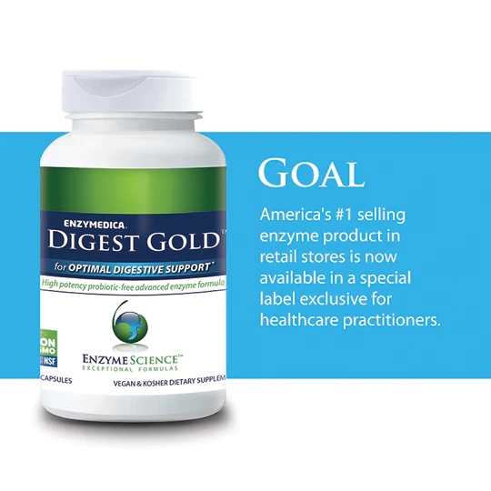 America’s #1 selling enzyme product in retail stores is now available in a special label exclusive for healthcare practitioners.* Digest Gold™ is an award-winning formula that provides superior protein and fat digestion as well as a combination of carbohydrase enzymes for digesting a wide range of sugars and fibers commonly consumed in an average meal.*