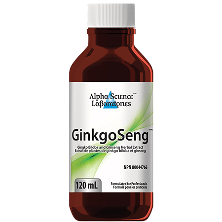 GinkgoSeng™ is a liquid herbal extract combining Ginkgo biloba and North American Ginseng to support cognitive function, memory, circulation, and mild nervousness relief.