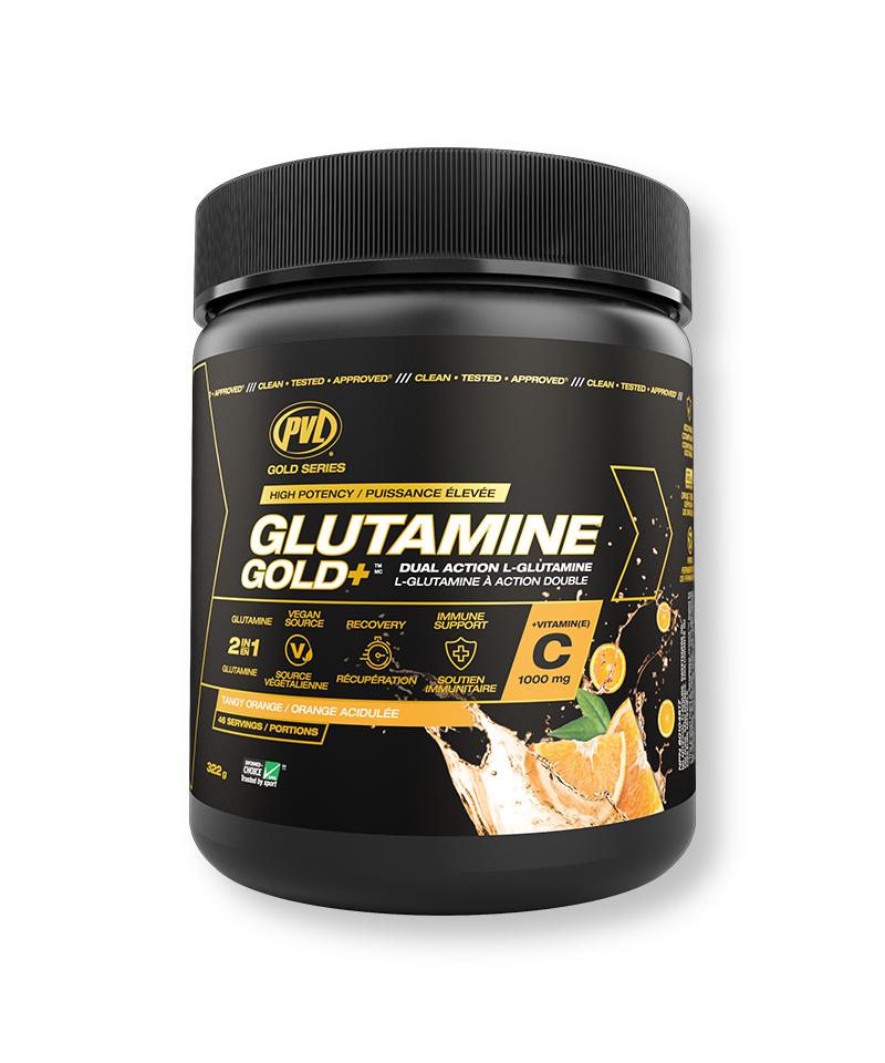 It only made sense to further harness the legendary power of Glutamine, by adding a hefty 1000mg dose of pure Vitamin C! After all, Glutamine is a legendary nutrient ideal for immunity, gut health support and muscle recovery. Glutamine plus the obvious addition of Vitamin C ramps up immunity, recovery and well-being to new complete heights. 2-in-1 vegan sourced Glutamine & L-Alanyl-L-Glutamine PLUS+ added Vitamin C! A dramatic 1-2 punch delivered in a deliciously light, tangy orange drink. Fight back. Recover quickly. All new Glutamine Gold + Vitamin C – only from PVL®.