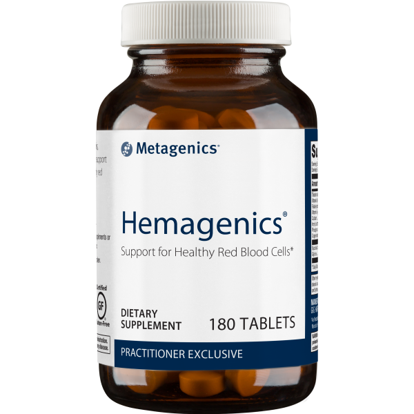Hemagenics is a blend of iron, B vitamins, and other nutritional factors designed to support healthy red blood cells.