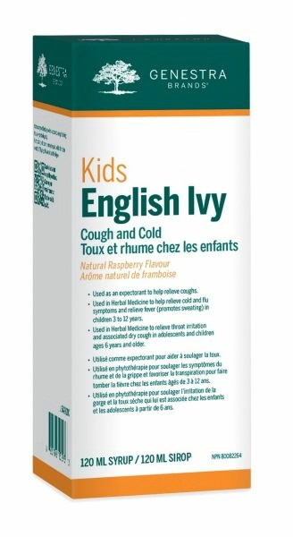 Kids English Ivy is a great-tasting combination of herbs traditionally used to help relieve symptoms associated with coughs and colds. It provides English ivy, which has been demonstrated in clinical trials to help relieve coughs, promote expectoration, and improve respiratory function in children with chronic bronchitis.1-3 A mucilaginous herb, marshmallow contains polysaccharides that coat the mucosal lining of the respiratory tract.4 Clinical research supports its traditional use in Herbal Medicine as a demulcent to relieve the irritation of the oral and pharyngeal mucosa and associated dry cough.4 Kids English Ivy also includes European elder, an herb well-recognized for its high anthocyanin content.5 European elder is used in Herbal Medicine to promote sweating (diaphoretic) to help relieve fever, while helping to relieve symptoms of colds and flus (such as coughs, sore throat and catarrh of the upper respiratory tract). Available in a delicious natural raspberry flavour, Kids English Ivy provides soothing relief of cough and cold symptoms in children 3 years and older.