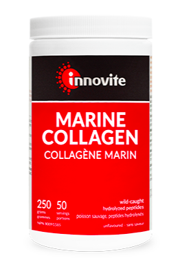 Marine Collagen is designed to support collagen formation throughout our extracellular matrix. Which is important, since it’s the extracellular matrix that gives our joints, bone and muscle tissue strength and structure. Collagen formation is also what helps us maintain the health of our hair, skin and nails. Marine Collagen type I hydrolyzed peptides are sourced from deep water, wild caught, pure fish protein (cod, haddock and pollock).