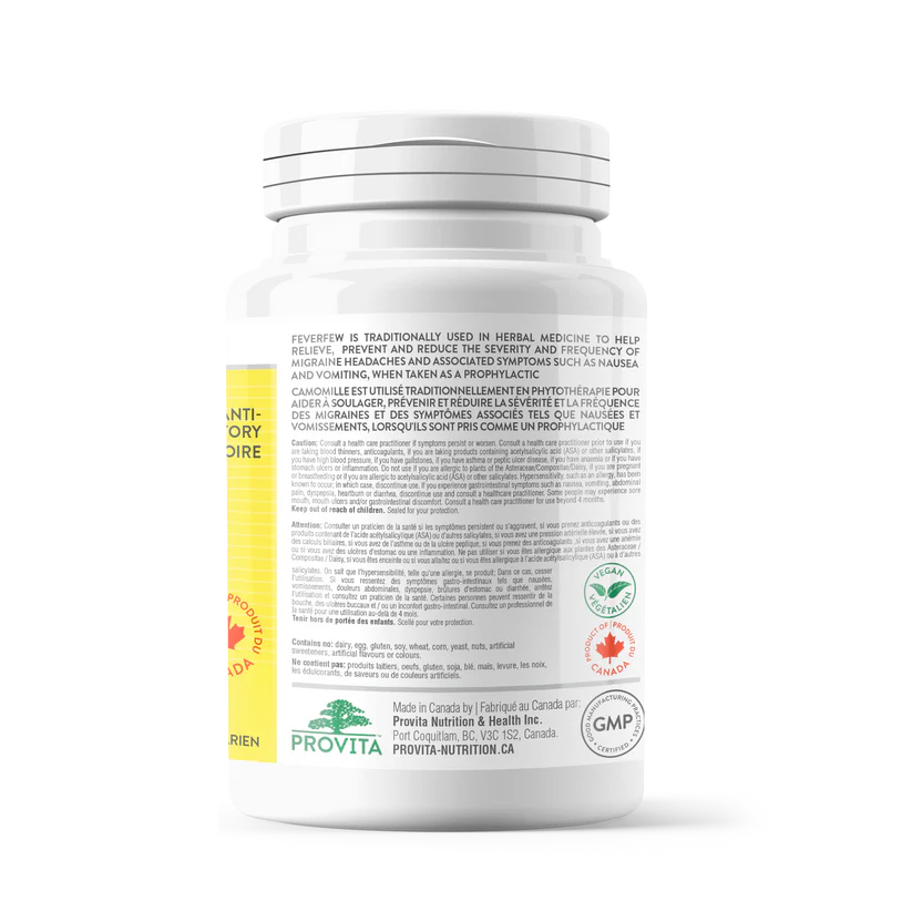 Do not use if you are allergic to plants of the Asteraceae/ Compositae/Daisy family, if you are pregnant or breastfeeding or if you are allergic to acetylsalicylic acid (ASA) or other salicylates. Consult a health care practitioner if symptoms persist or worsen. Consult a health care practitioner prior to use if you are taking blood thinners, anticoagulants, or products containing acetylsalicylic acid (ASA) or other salicylates, if you have high blood pressure, if you have gallstones, if you have asthma or peptic ulcer disease, if you have anemia or if you have stomach ulcers or inflammation. Hypersensitivity, such as an allergy, has been known to occur; in which case, discontinue use. If you experience gastrointestinal symptoms such as nausea, vomiting, abdominal pain, dyspepsia, heartburn or diarrhea, discontinue use and consult a health care practitioner. Some people may experience sore mouth, mouth ulcers and/or gastrointestinal discomfort.