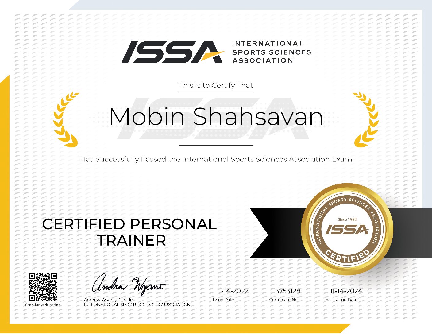 - Certifications: International Sports Sciences Association (ISSA)