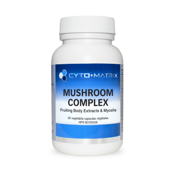 Cyto-Matrix’s Mushroom Complex provides these seven medicinal mushrooms in a total blend of 140mg cultured mycelia and 350mg of fruiting body extract per capsule offering health benefits from the entire mushrooms. The fruiting body is the reproductive structure of the mushroom, whereas the mycelium is the vegetative body of the mushroom. Although both the fruiting body and the mycelium perform different functions and have different structures, both contain biologically active compounds.