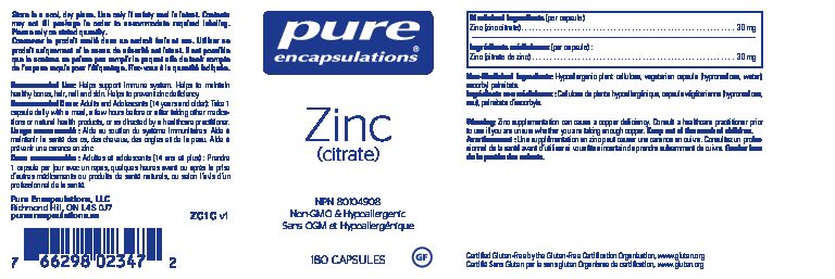Medicinal Ingredients (per capsule): Zinc (zinc citrate) …………………………………… . 30 mg Non-Medicinal Ingredients: Hypoallergenic plant cellulose, vegetarian capsule (hypromellose, water), ascorbyl palmitate